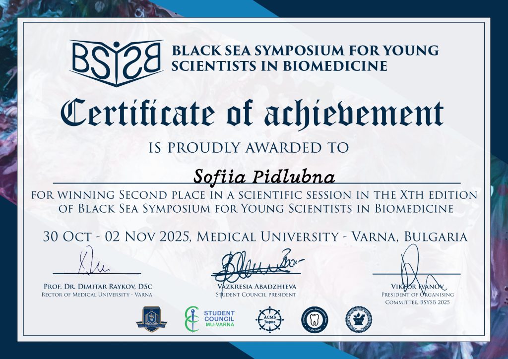 СТУДЕНТКА МЕДИКО-ФАРМАЦЕВТИЧНОГО ФАКУЛЬТЕТУ – ПРИЗЕРКА МІЖНАРОДНОГО МЕДИЧНОГО СИМПОЗІУМУ В БОЛГАРІЇ